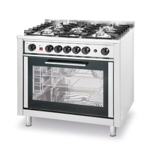 • Umluftofen 1/1 GN mit einer Leistung von 2,7 kW, ausgestattet mit zwei Ventilatoren, Thermostat bis 275ºC und Timer